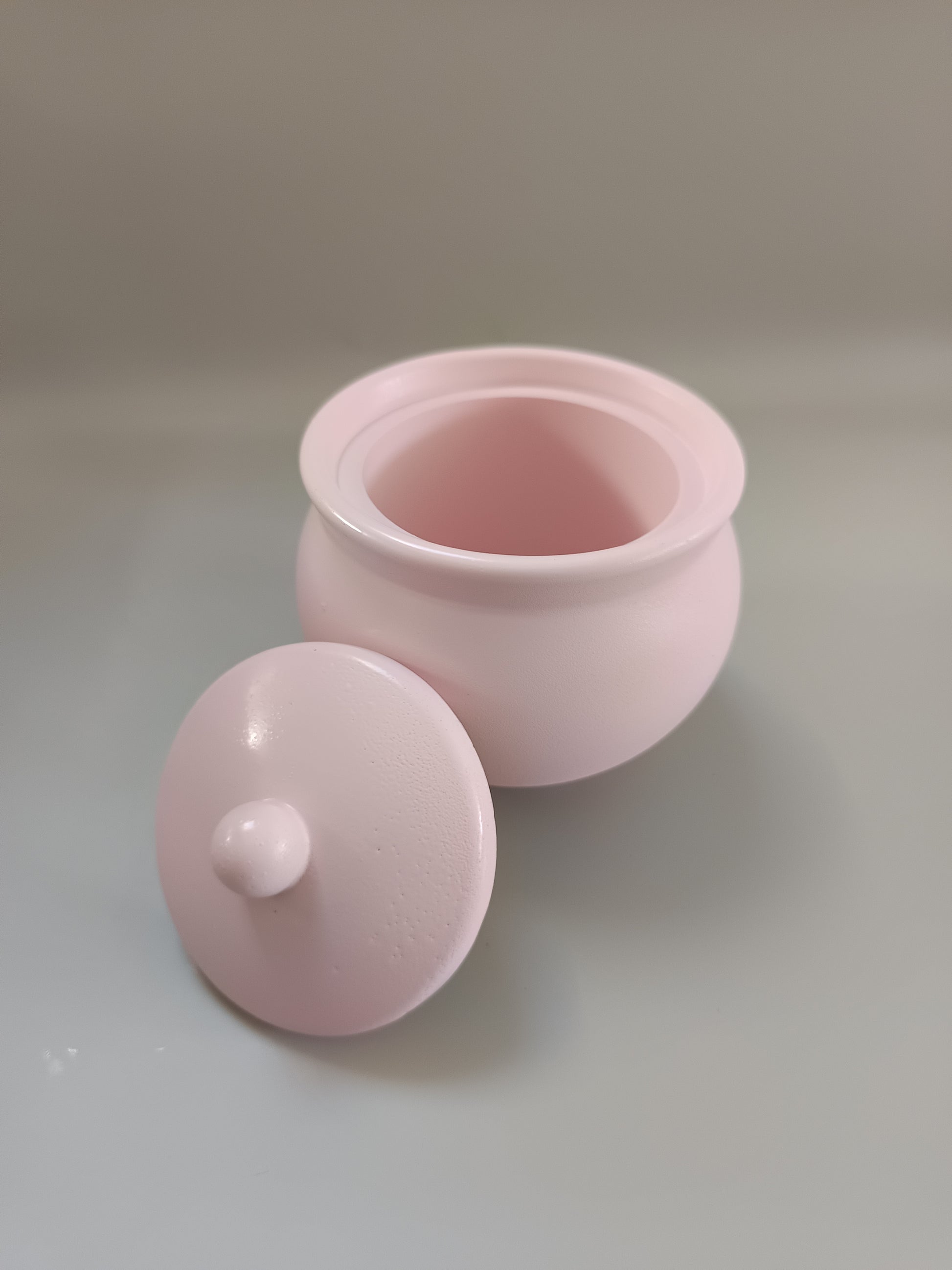 Boîte ronde en jesmonite rose pâle 9*7,5 cm