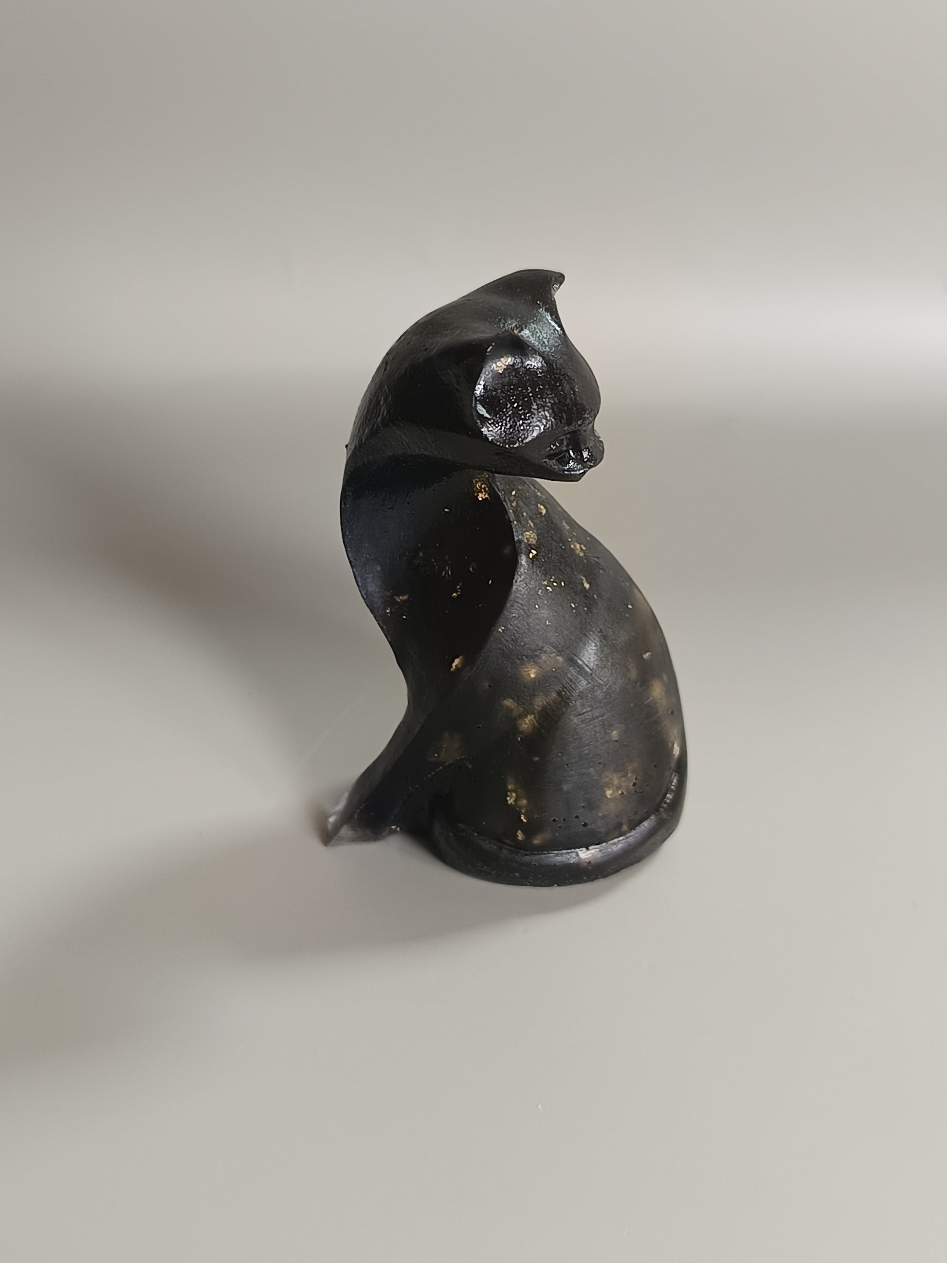Figurine chat en résine époxy noir et légeres feuilles d'or