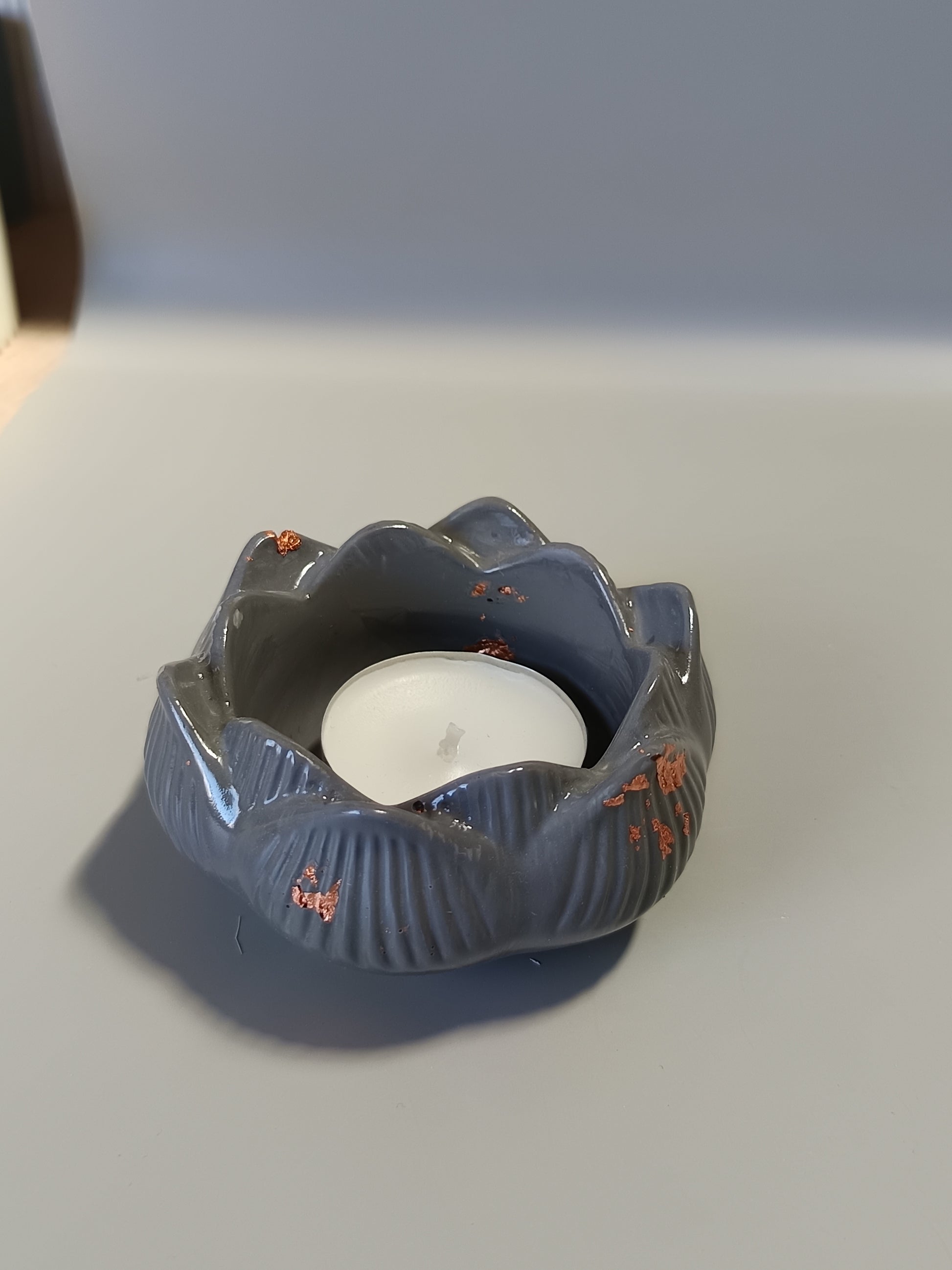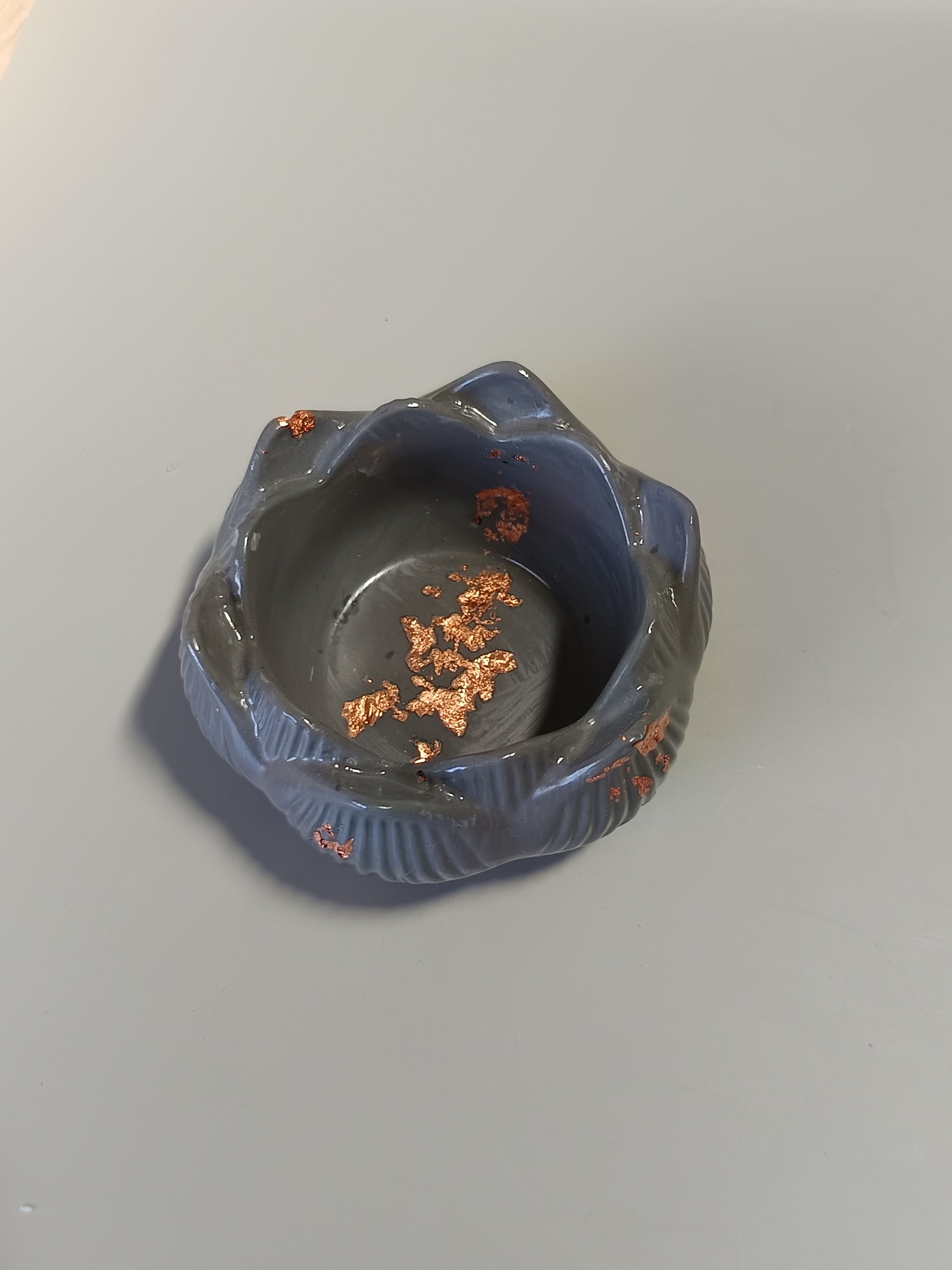 Fleur de lotus grise et feuilles de bronze 8*8 cm