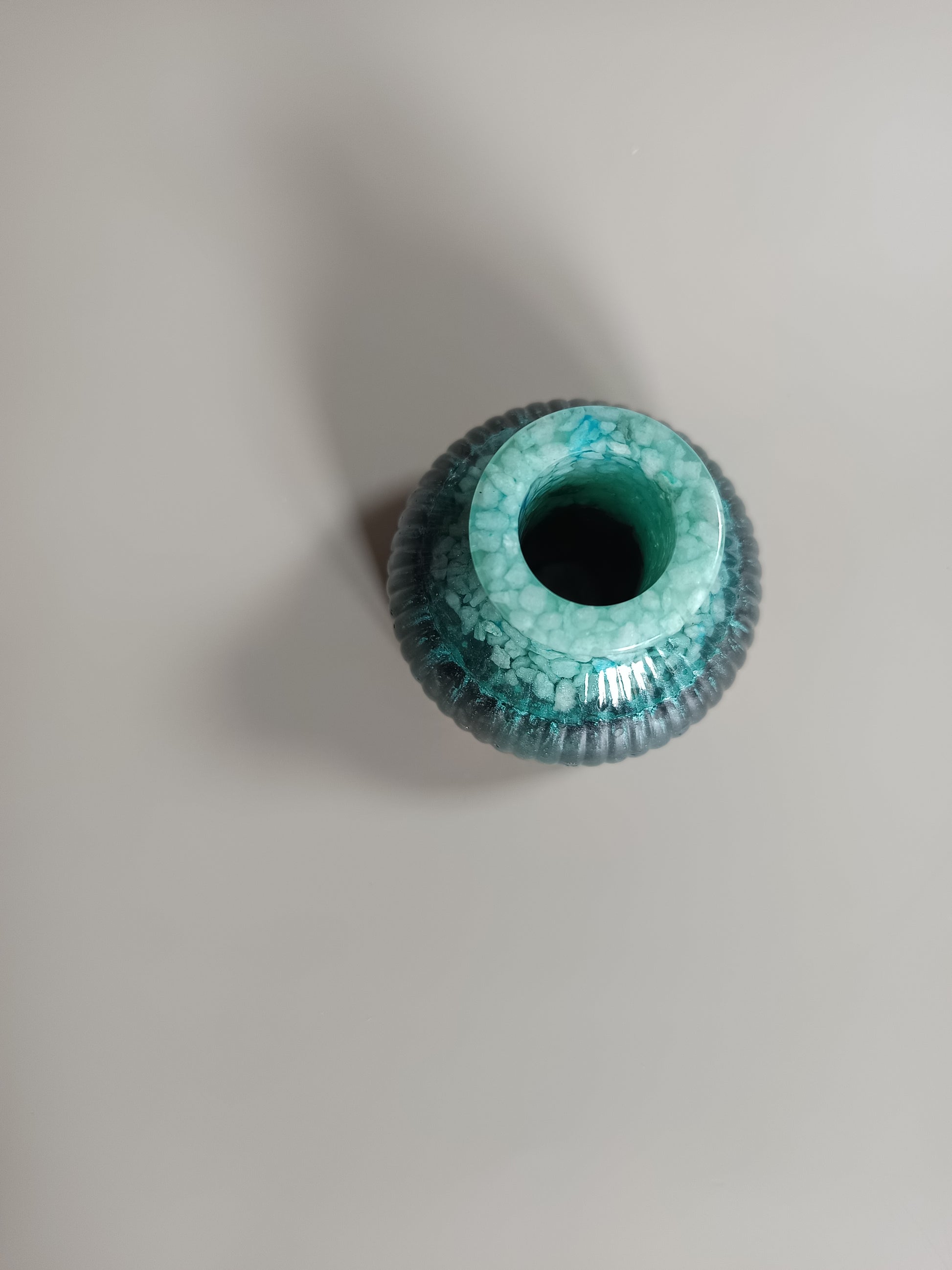 Mini vase en résine époxy noir et bleu avec ses pierres bleues