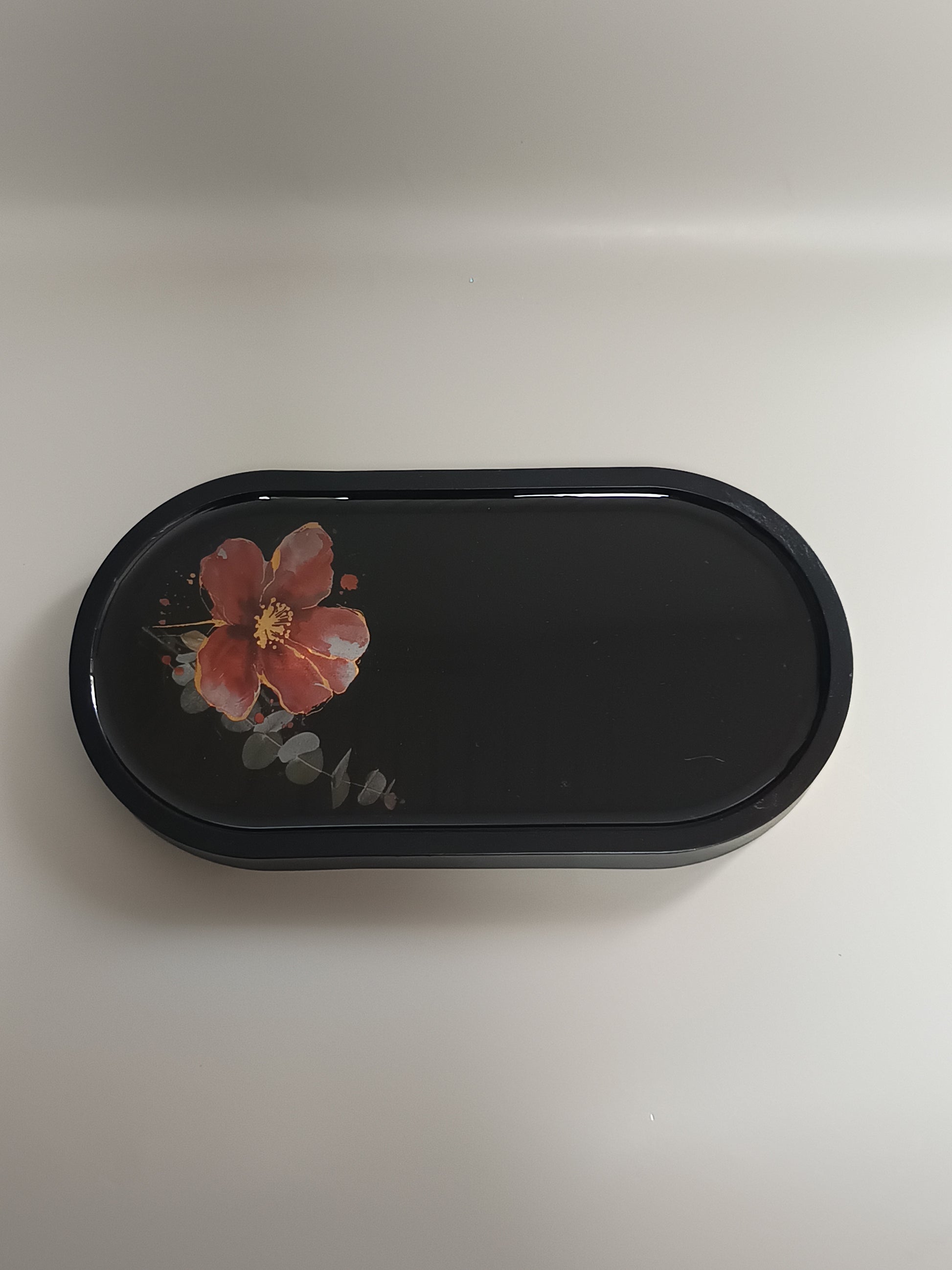 Plateau ovale noir avec sa fleur