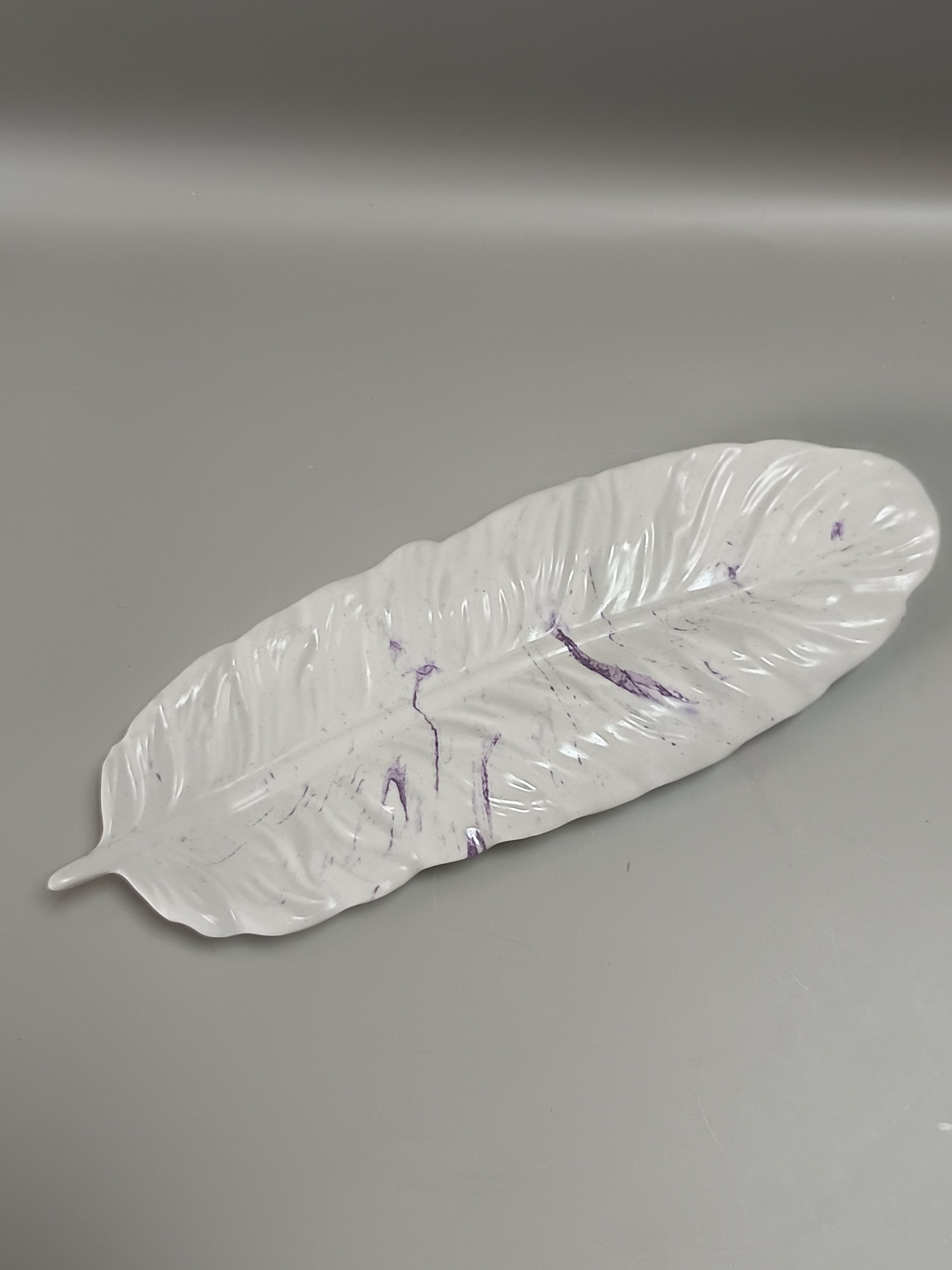 Plume blanche avec marbrures violette
